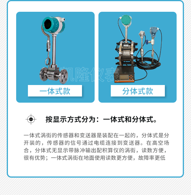 LUGB型蒸汽流量計(jì)有一體化溫壓補(bǔ)償和分體式溫壓補(bǔ)償兩種。