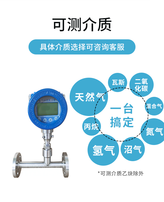 可測量介質:煤氣、焦爐煤氣、發生爐煤氣、天然氣、燃氣、空氣、氧氣、氫氣、氮氣、煤氣、煙氣、氨氣、沼氣、瓦斯、甲烷、丙烷等(乙炔除外)。